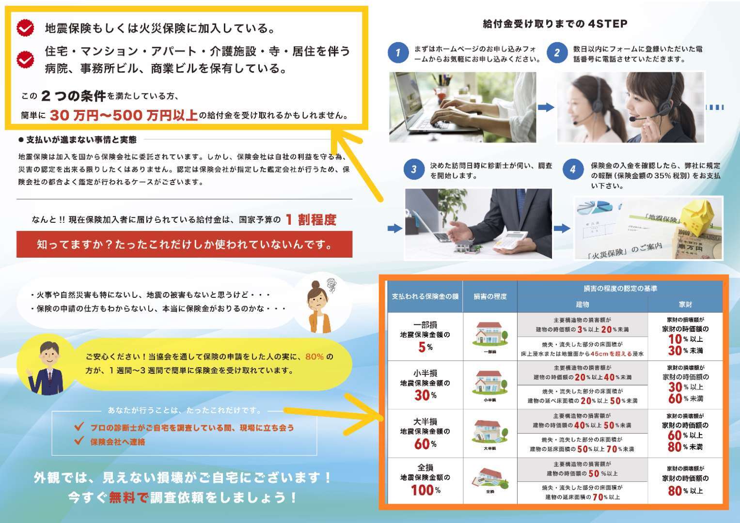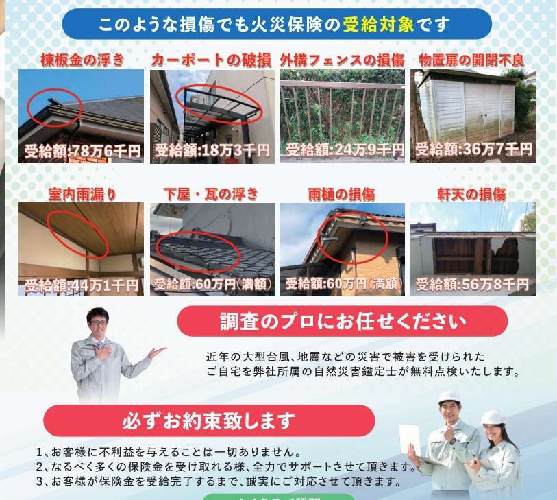 今回、前回の受給から2年が経ちましたが、今年の1/1の地震の影響があったのかどうか?結構大阪も揺れましたので、先月建物調査に入っていただき調べてもらいました。(何もなければ調査費用は無料ですので)